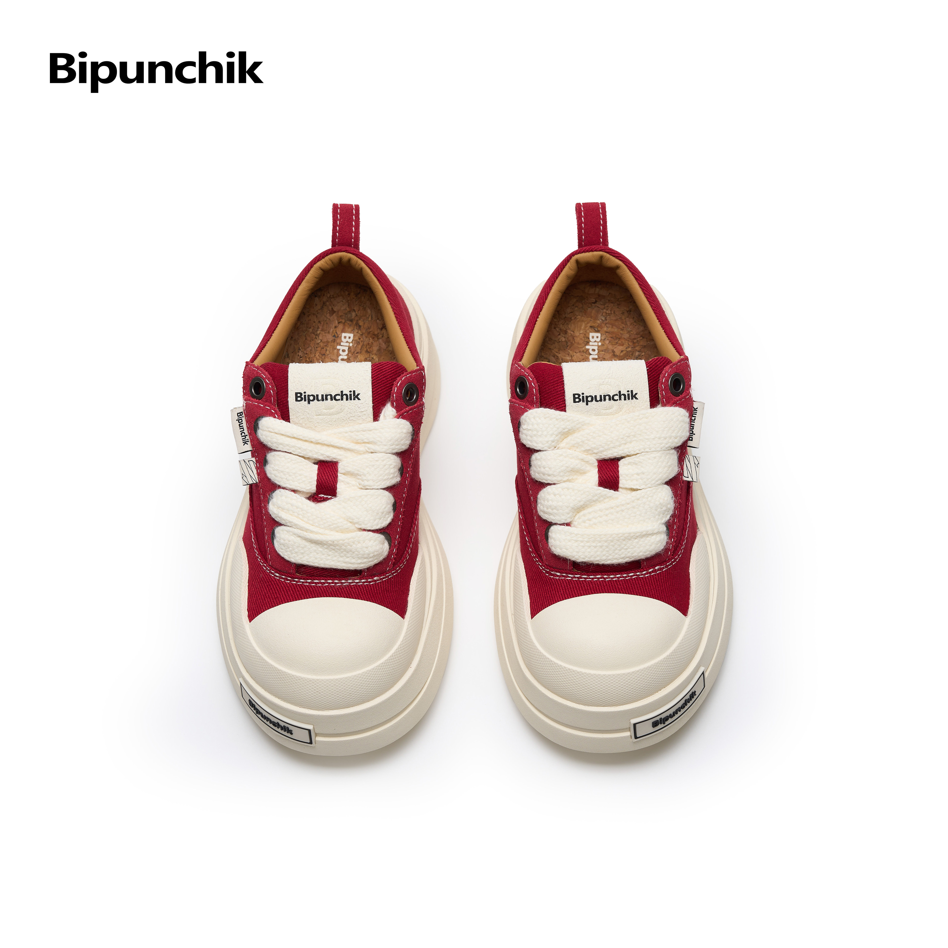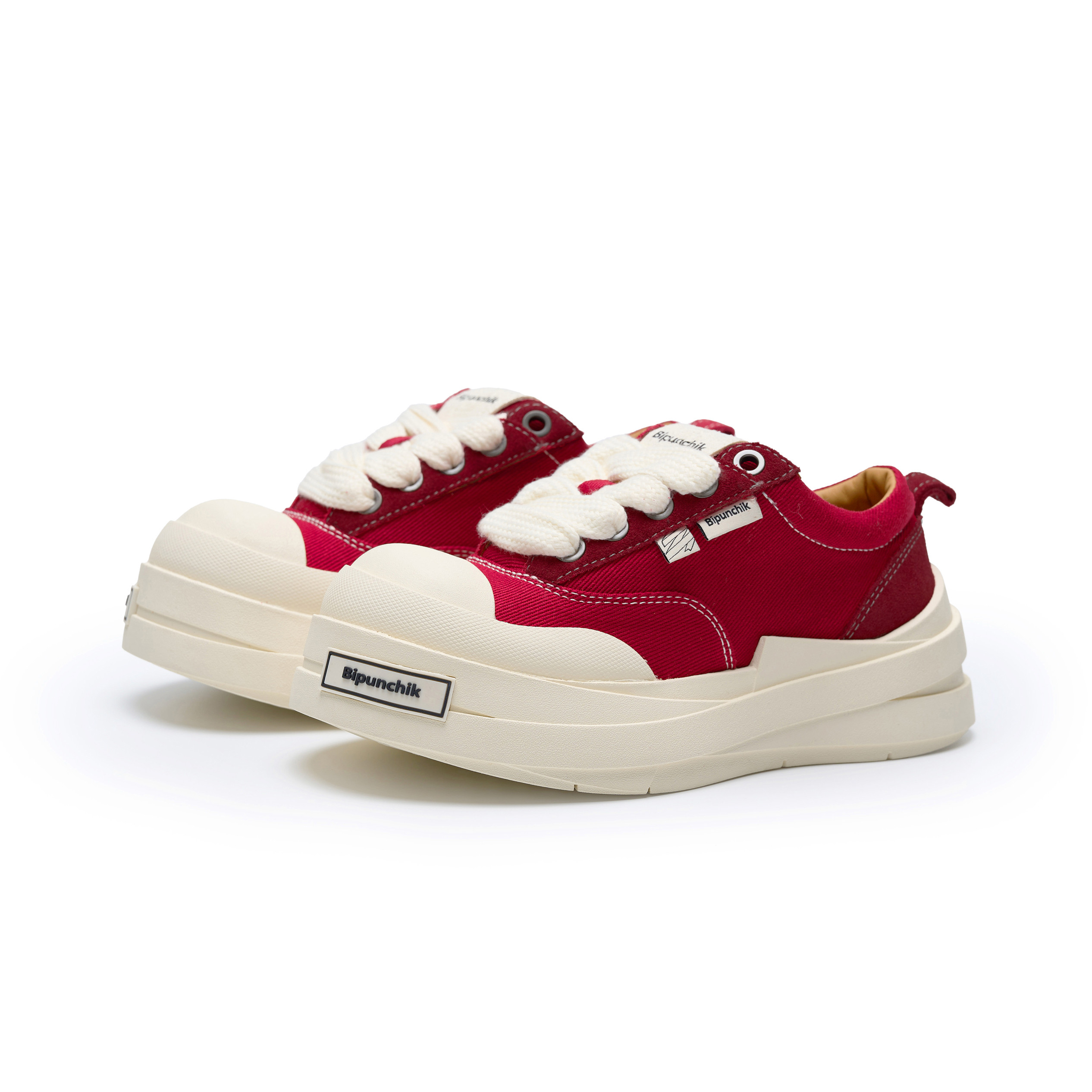 淘宝Bipunchik绷带帆布鞋红色大头鞋男女同款增高厚底板鞋秋冬情侣