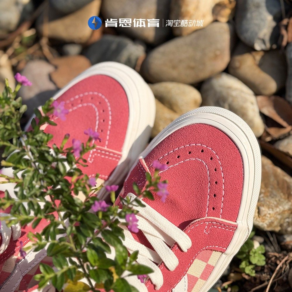 淘宝VANS范斯正品粉白撞色棋盘格休闲耐磨女高帮帆布板鞋VN0A38GF2U9