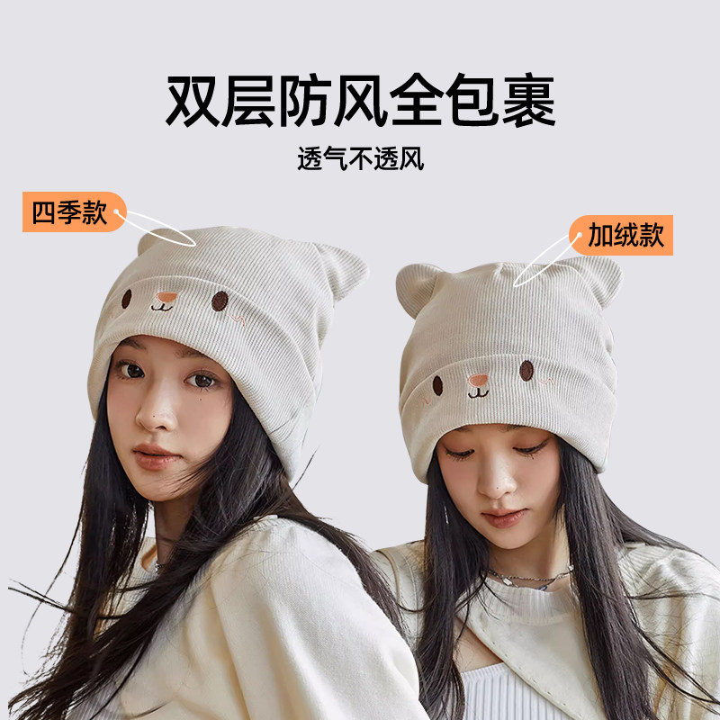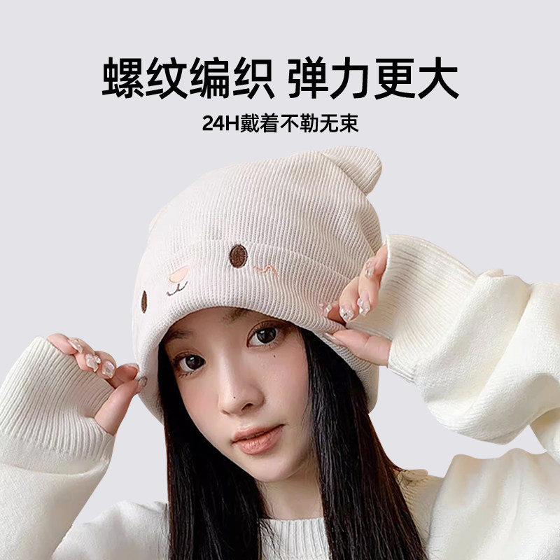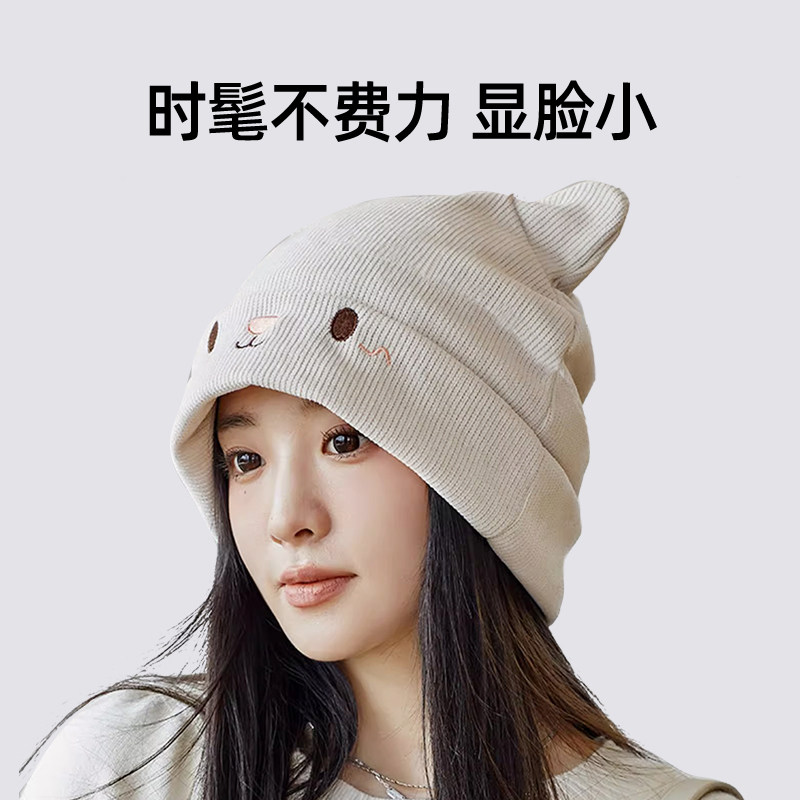 天产妇月子帽产后堆堆猫耳朵毛线孕妇帽子女夏季秋冬针织可爱冬季男