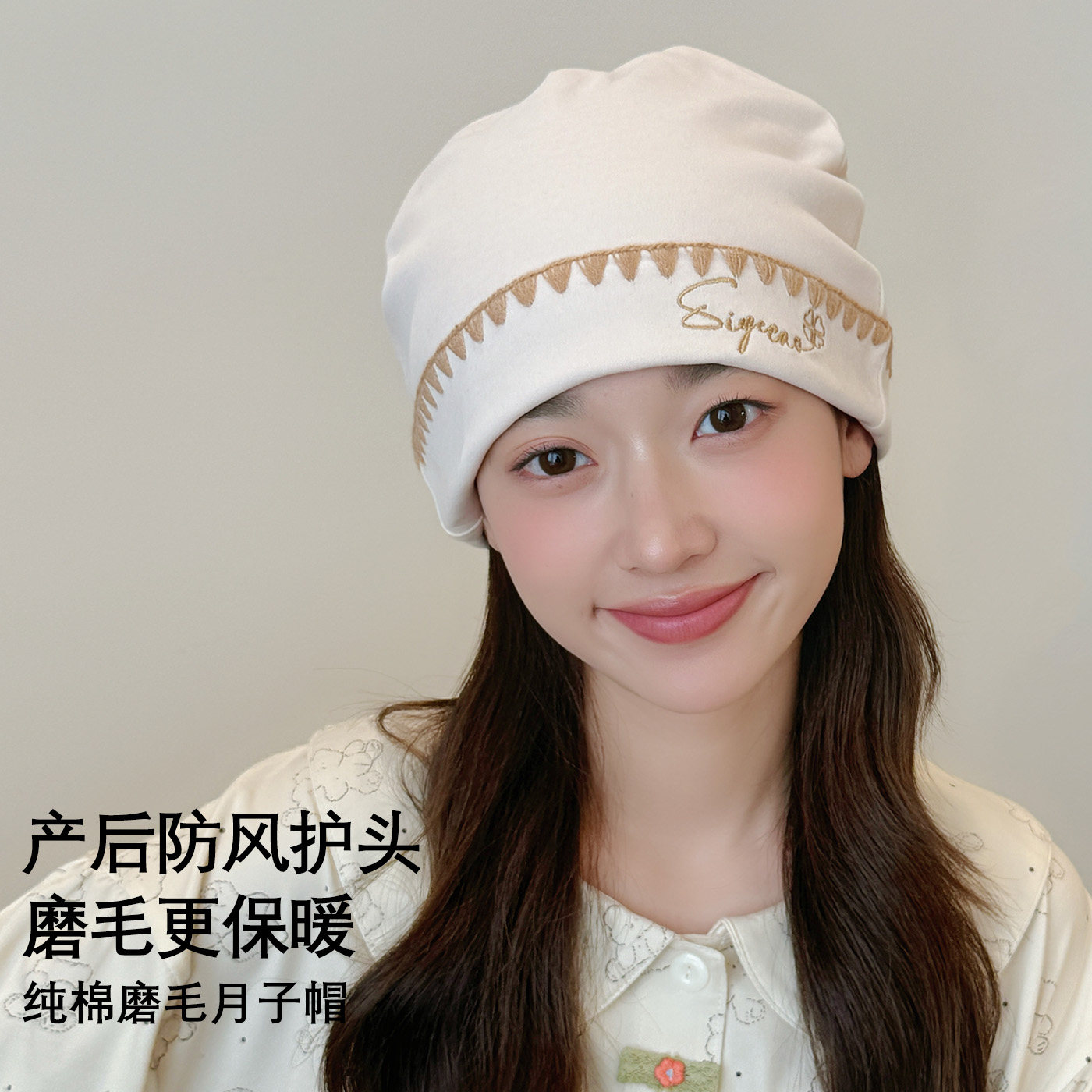 淘宝婧麒[磨毛]月子帽秋冬防风保暖产妇帽坐月子孕妇纯棉护头帽