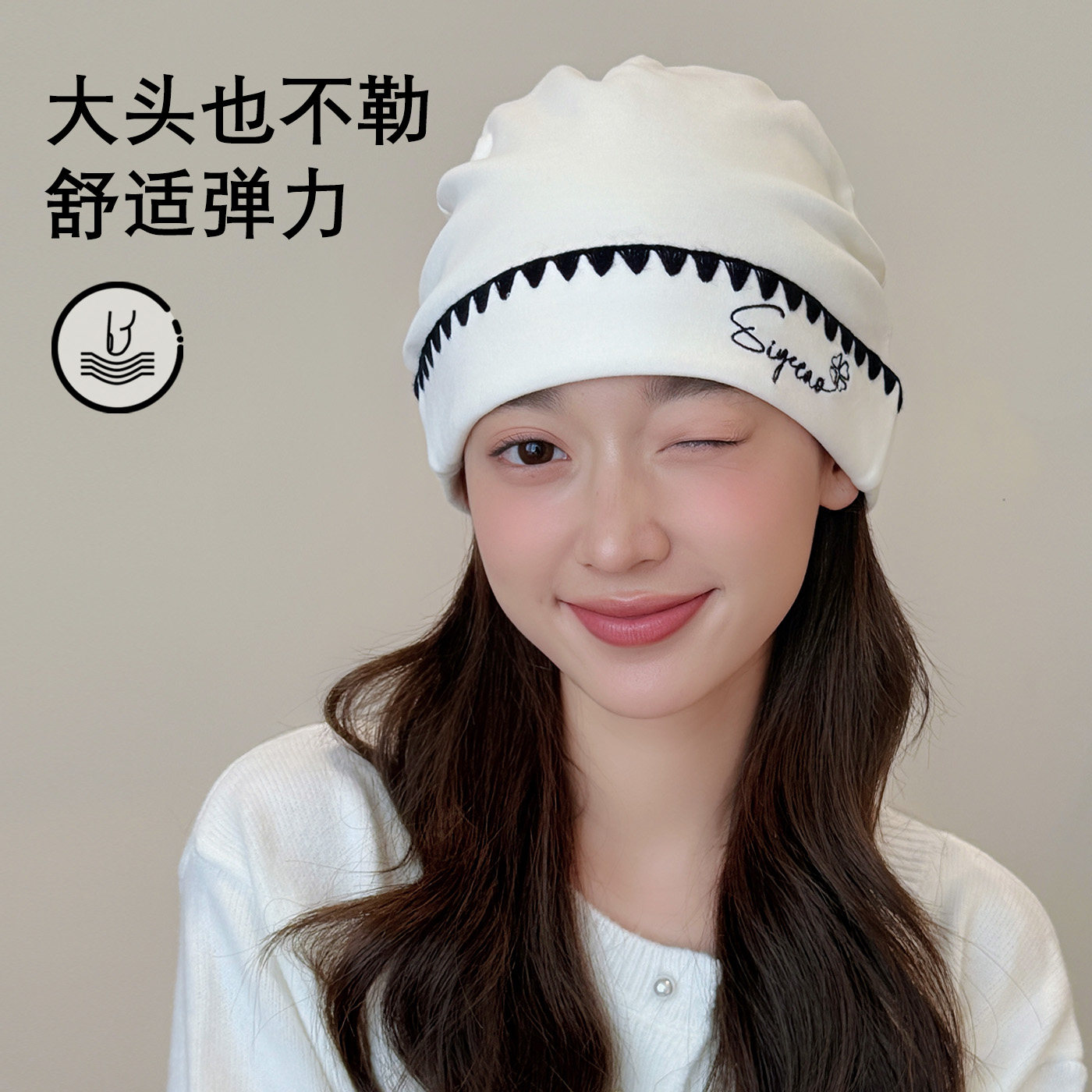 冬季大头围冷帽帽子女款2025新款时尚潮流百搭堆堆帽月子帽孕妇冬