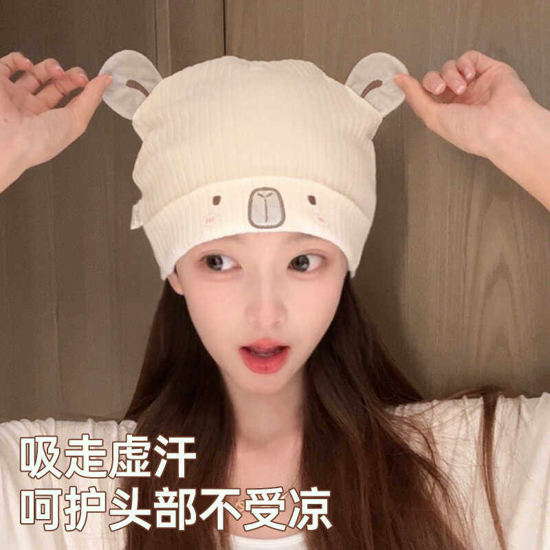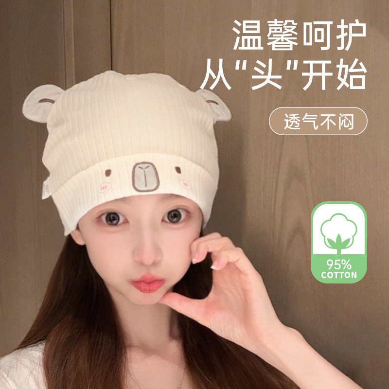 孕妇产后帽子透气舒适纱布月子帽可爱薄款夏天空调房防吹风套头帽