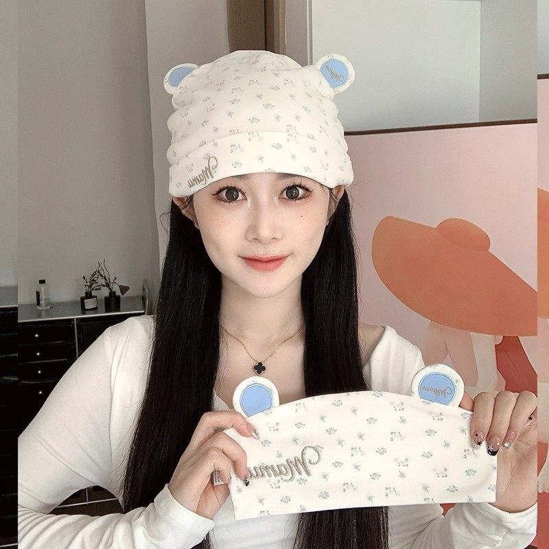 婧麒[芙熊]月子帽秋冬产后纯棉产妇帽坐月子头巾发带孕妇防风帽子