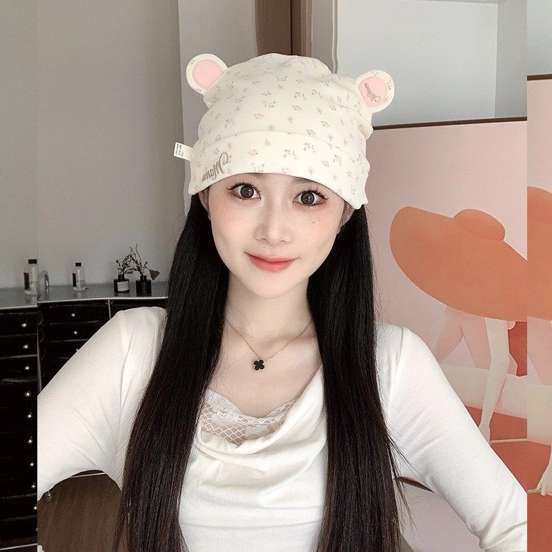 天纯棉孕妇月子帽女士春夏封顶薄款单层光板百搭护耳防风套头帽睡帽