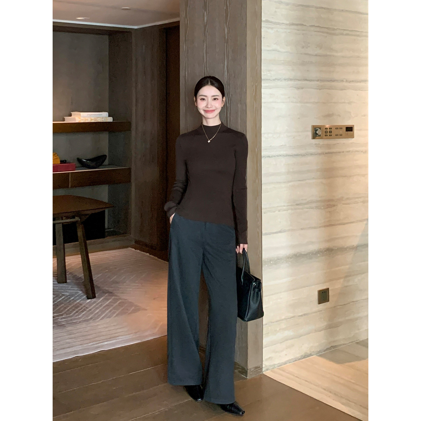 IHIMI海谧醋酸羊毛法式灰针织羊毛休闲裤女秋季时髦直筒王牌西裤