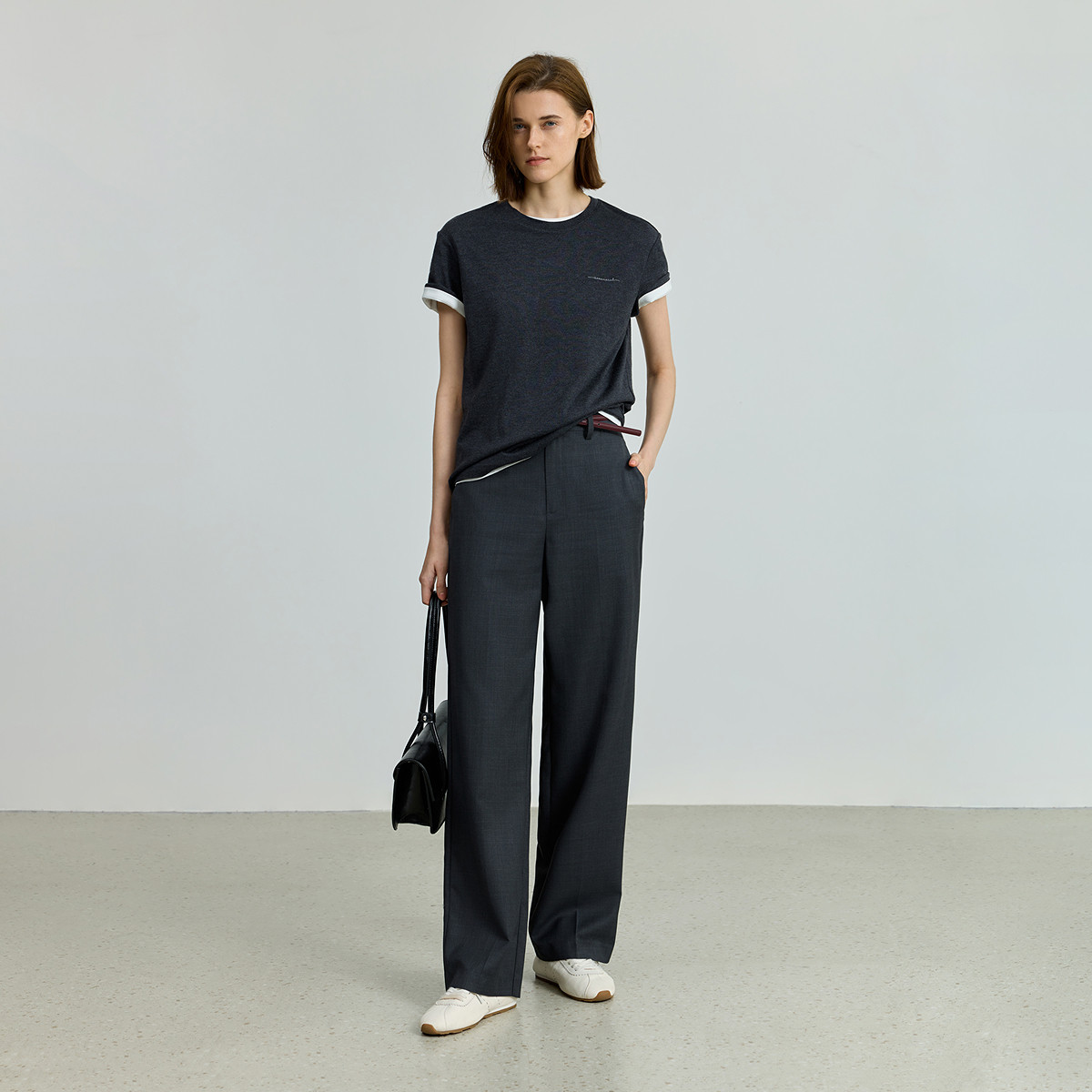 天菁英系列LILY2025新款女装复古老钱风休闲通勤直筒微锥裤西裤