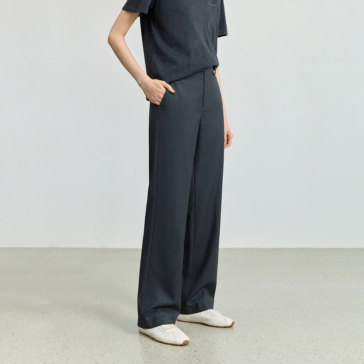 IHIMI海谧醋酸羊毛法式灰针织羊毛休闲裤女秋季时髦直筒王牌西裤
