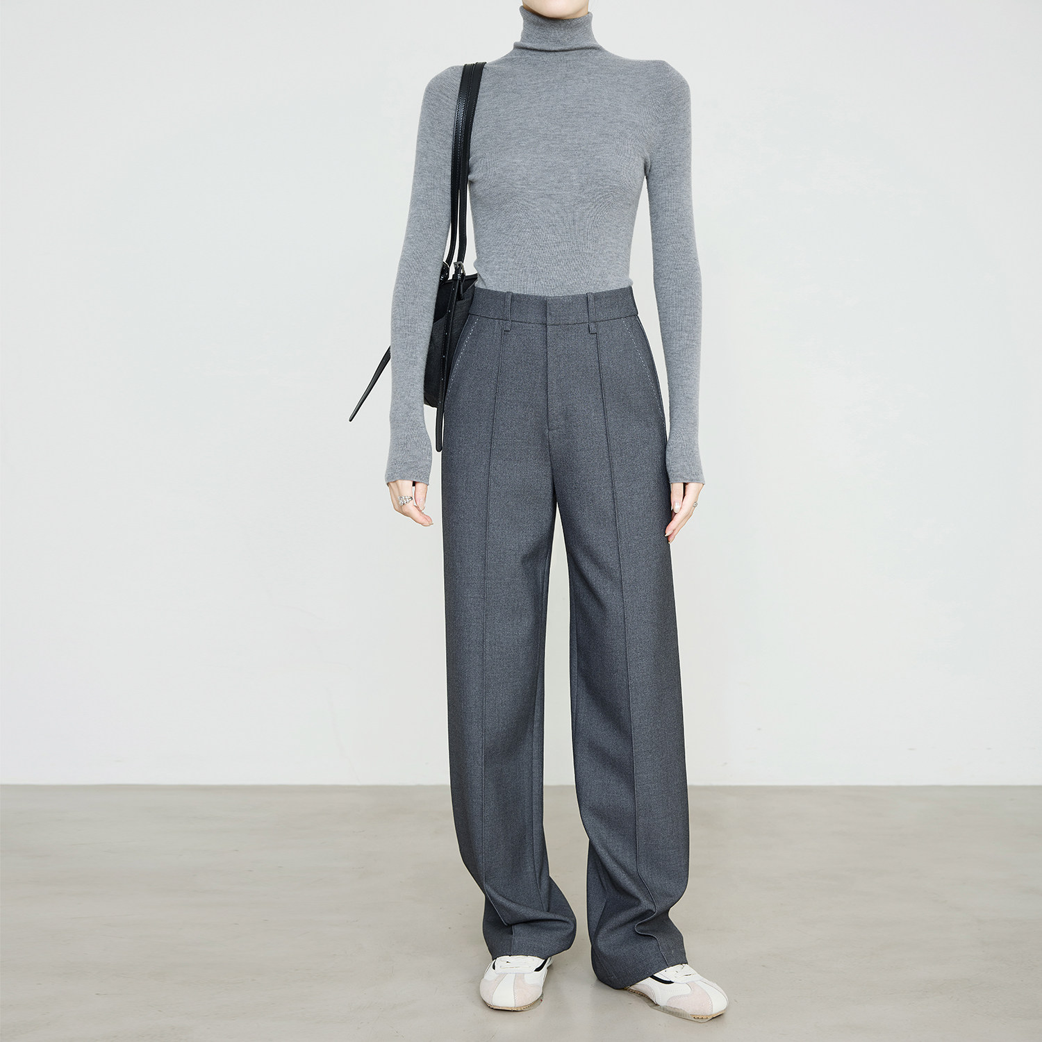 IHIMI海谧醋酸羊毛法式灰针织羊毛休闲裤女秋季时髦直筒王牌西裤