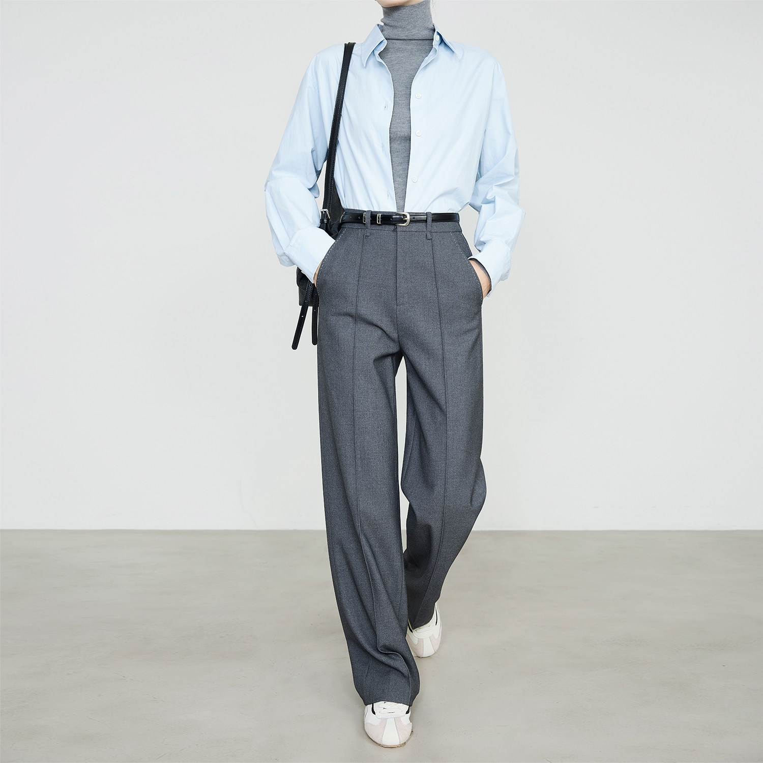 Maven Lin 重磅推荐! 极简后松紧高腰西装裤女保暖通勤阔腿裤西裤