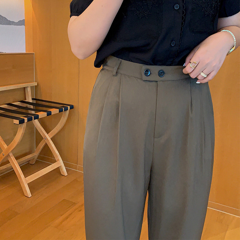 twosweet【神裤混纺醋酸版】实穿免烫黑色直筒微喇高腰休闲西裤女