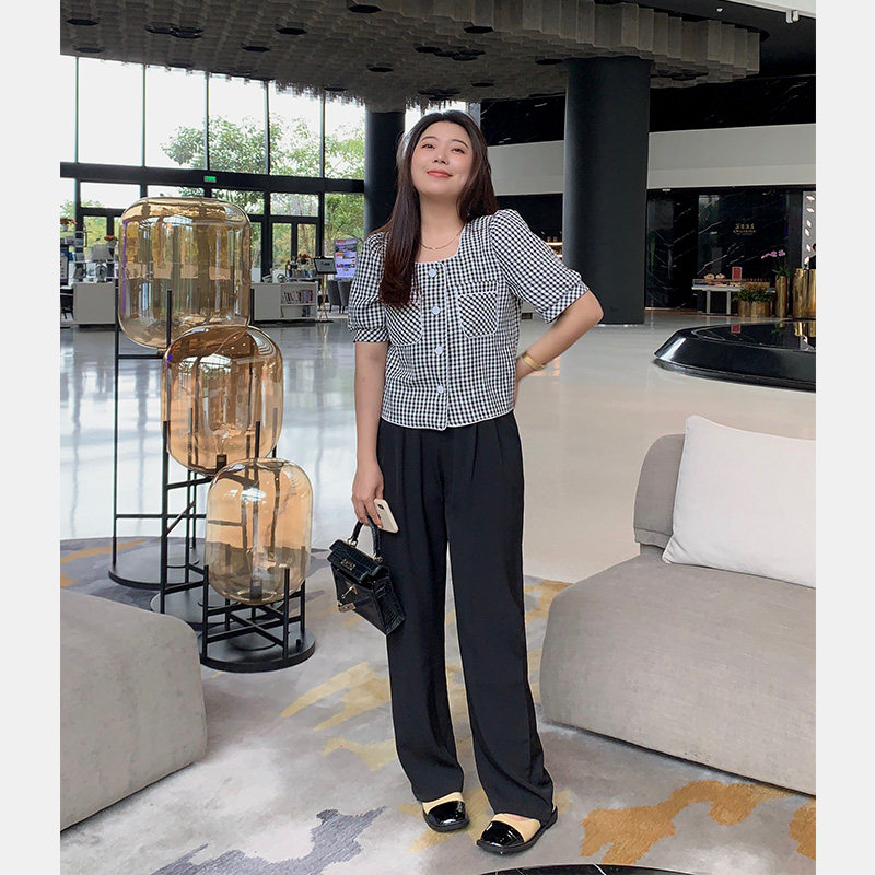 淘宝大码女装胖mm高腰西裤女夏季薄款垂感正装微胖休闲阔腿裤子女显瘦