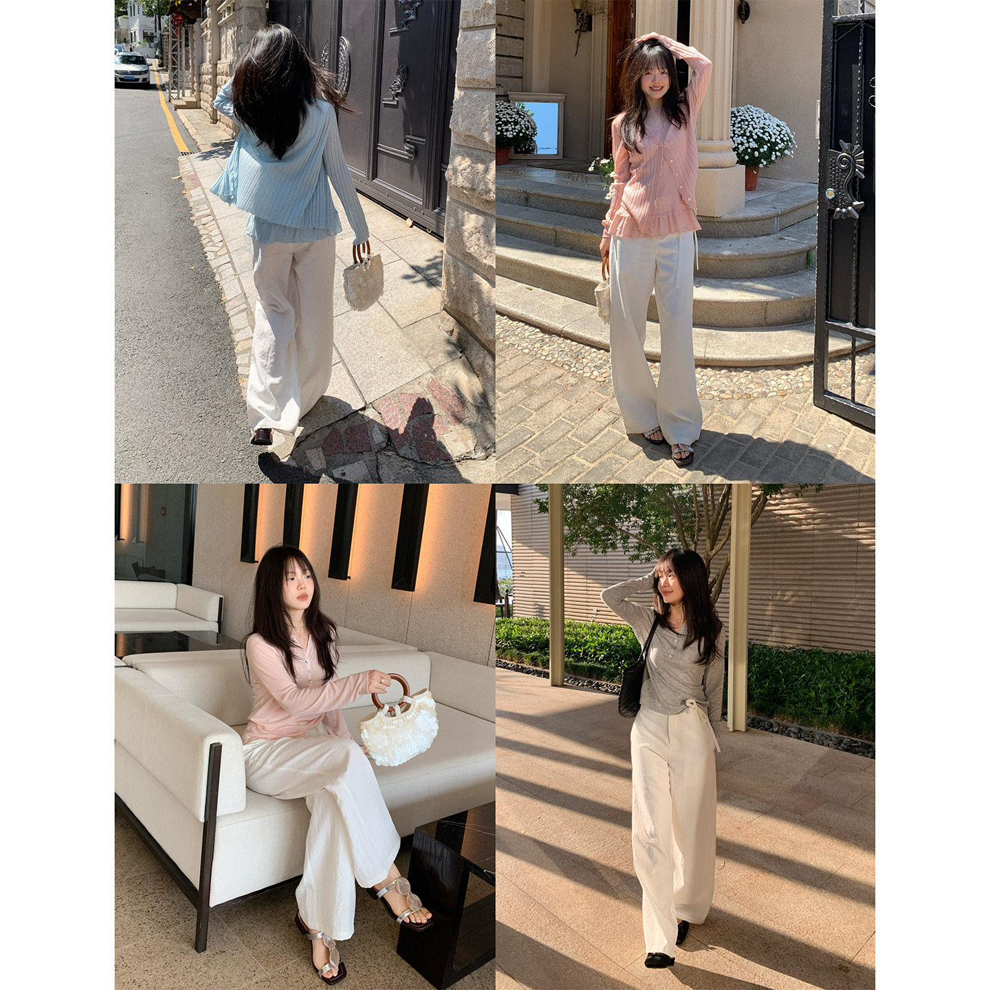 淘宝一三良品小个子 神裤!白色通勤宽松阔腿休闲长裤直筒垂感西裤女