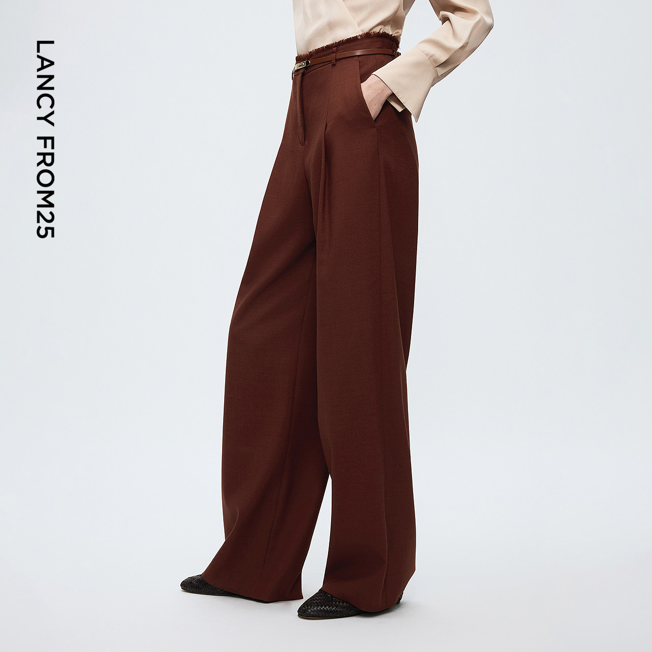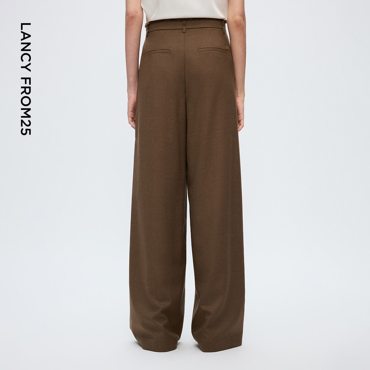 天猫【王楚然同款】朗姿高智衣橱羊毛高腰直筒西裤通勤风率性阔腿裤女