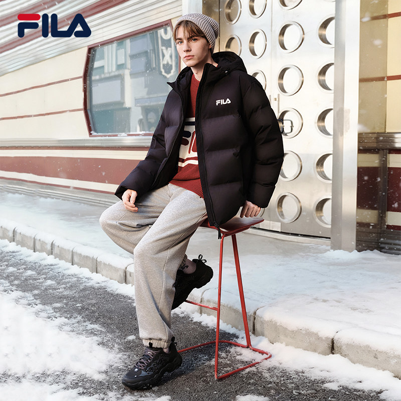 天猫FILA 斐乐官方男士羽绒服2025冬季新款时尚休闲宽松保暖连帽外套