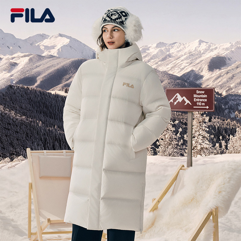 天猫FILA斐乐官方情侣款户外长款羽绒服2025冬新款派克服女保暖外套男
