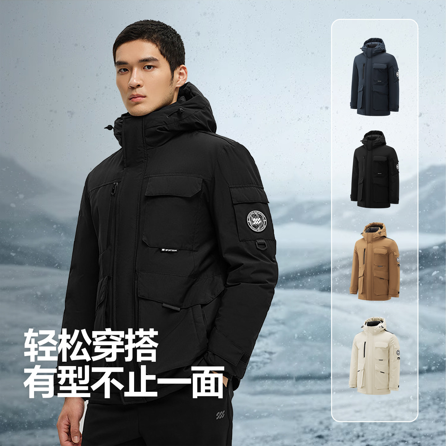 天【机能冰壳】杰克琼斯冬季男装宽松时尚连帽羽绒服外套上衣男款