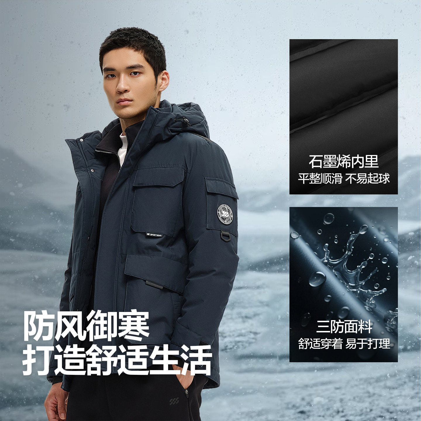 三福2025冬季男士可拆内里三合一羽绒服 抽绳连帽立领外套505812