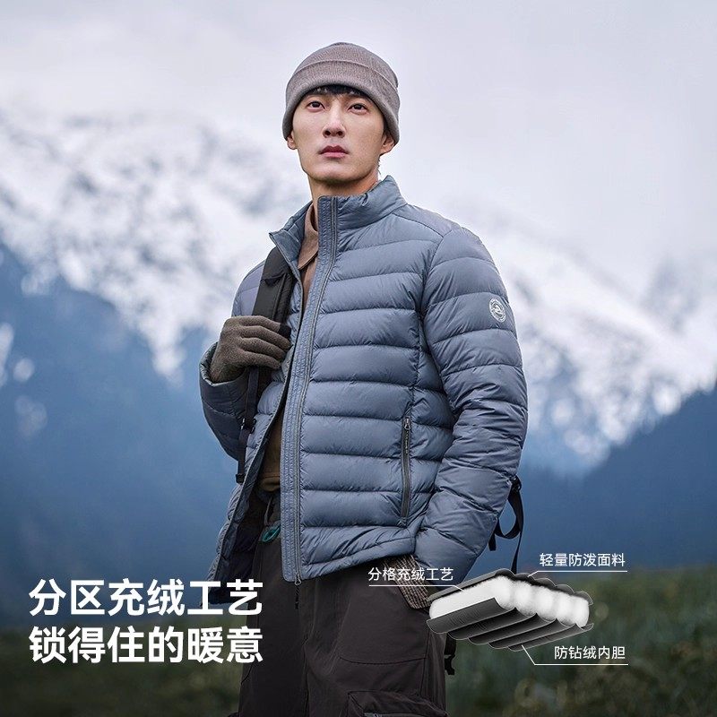 天【三防面包服】报喜鸟冬季新款休闲短款加厚白鸭绒羽绒服外套男款