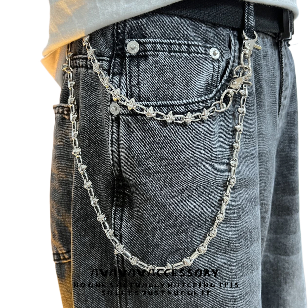 ins裤链嘻哈潮腰链男女通用带挂勾个性朋克小方巾双层圆珠裤链条