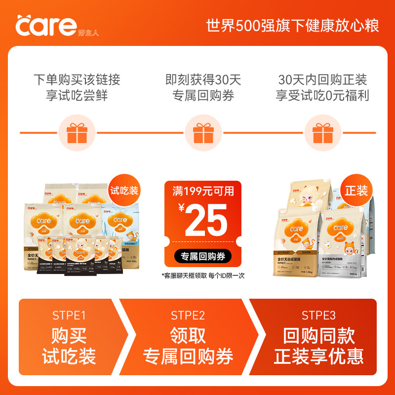 天猫care好主人金装成幼猫粮通用营养增肥发腮全阶段专用试吃装体验装
