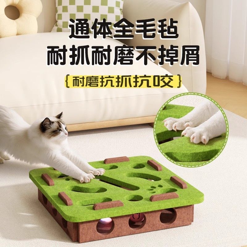 淘宝猫玩具自嗨解闷神器小猫宠物猫咪益智迷宫掏洞毛毡盒子逗猫铃铛球