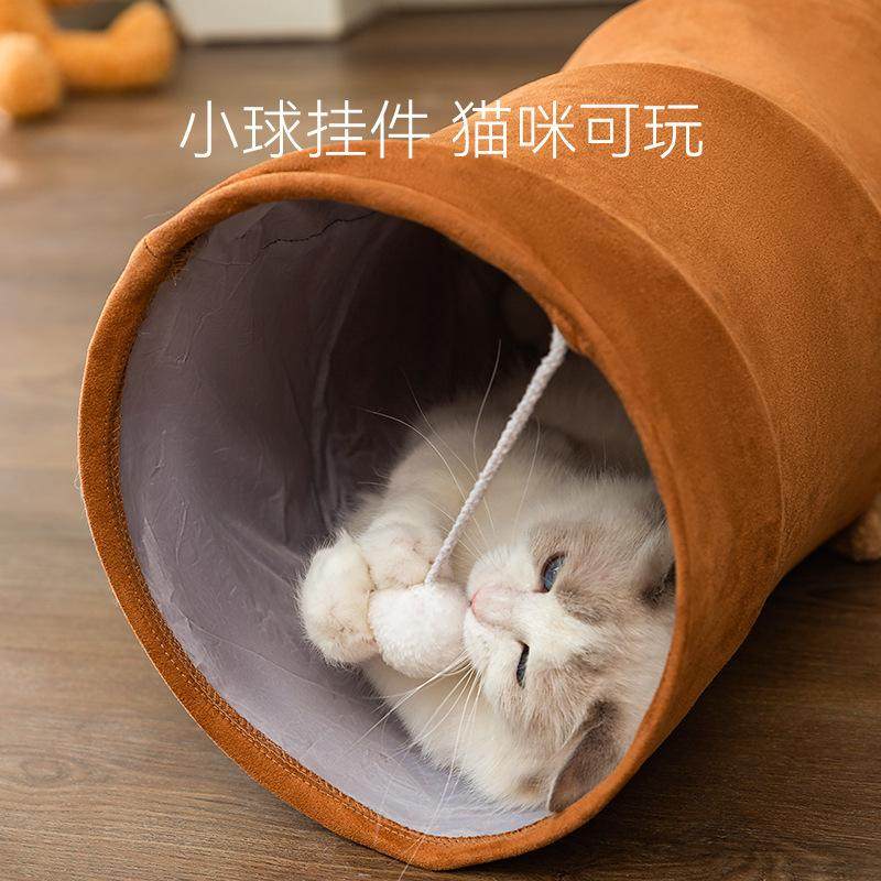 淘宝猫隧道直筒棕色小熊玩具猫玩具玩耍消耗精力可折叠猫隧道宠物用品