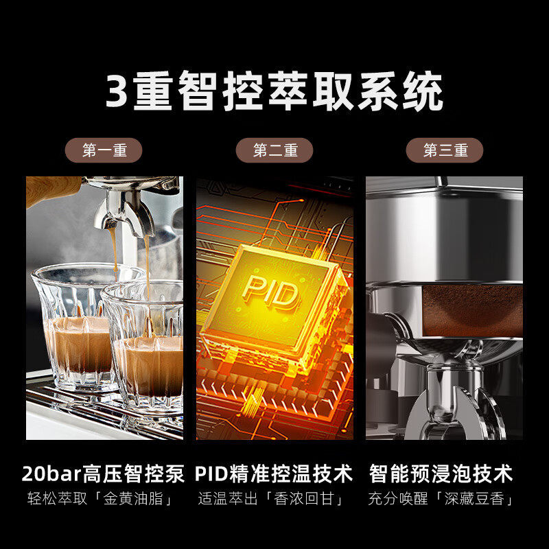 天猫小熊意式咖啡机半自动办公家用小型蒸汽打奶泡萃取研磨一体机现磨