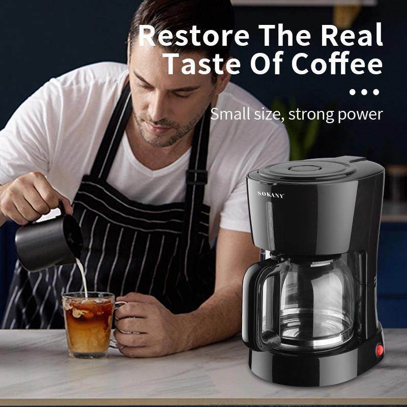 SOKANY 1121 是一款1.5升大容量滴漏式咖啡机,专为喜爱美式咖啡的用户设计。采用高效加热系统,快速煮沸并均匀滴滤,充分萃取咖啡香气,口感醇正顺滑。机身配备玻璃咖啡壶与保温盘,持久保温,随时享用温热咖啡。操作简单,一键启动,自动断电功能保障使用安全。透明水箱设计,水量清晰可见,方便掌握冲泡量。紧凑外观节省台面空间,适合家庭、办公室等多种场景。SOKANY 1121以实用、便捷与稳定性能,为您带来每日一杯高品质美式咖啡的轻松体验,是咖啡爱好者的理想之选。
