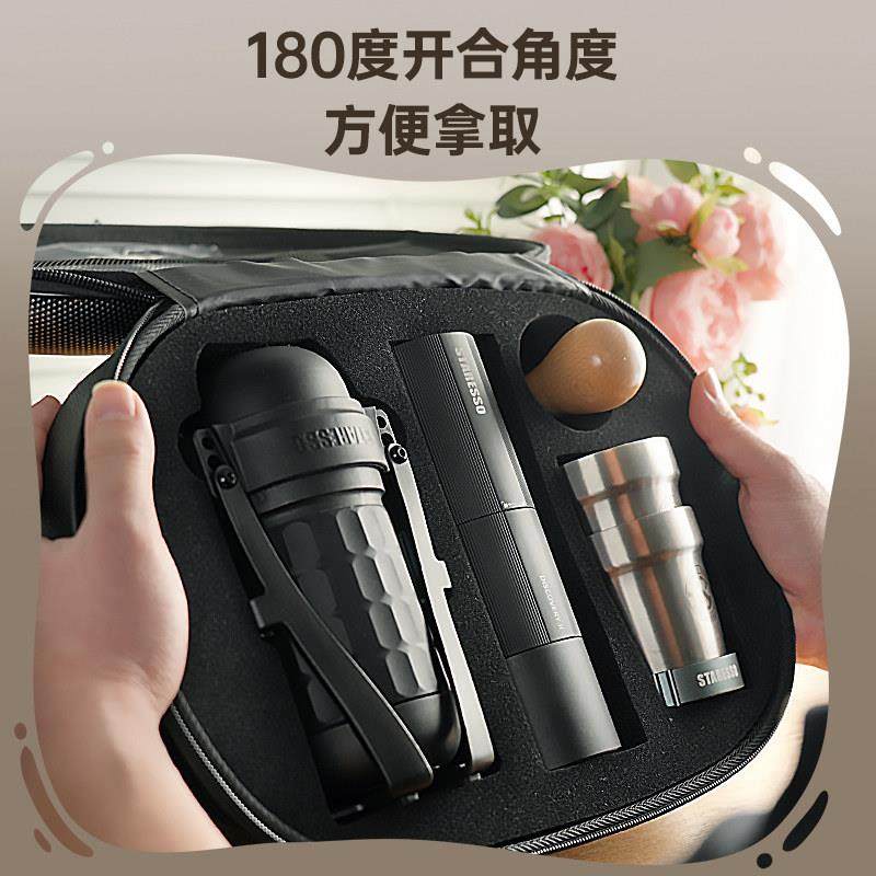 星粒星大师手压咖啡机礼盒套组,专为咖啡爱好者匠心打造,集便携、专业与美学于一体。套装包含手压咖啡机、磨豆器、滤杯、咖啡壶及清洁工具,全套户外咖啡解决方案一应俱全。采用高品质不锈钢与食品级材质,结构稳固,操作简单,无需电力即可享受现磨现萃的醇香咖啡。精巧礼盒包装,送礼自用皆宜,无论是露营、旅行还是居家使用,都能轻松还原意式浓缩的浓郁口感。星粒星大师以精湛工艺融合实用设计,让每一杯咖啡都成为生活仪式感的体现,是追求品质生活的咖啡达人的理想之选。