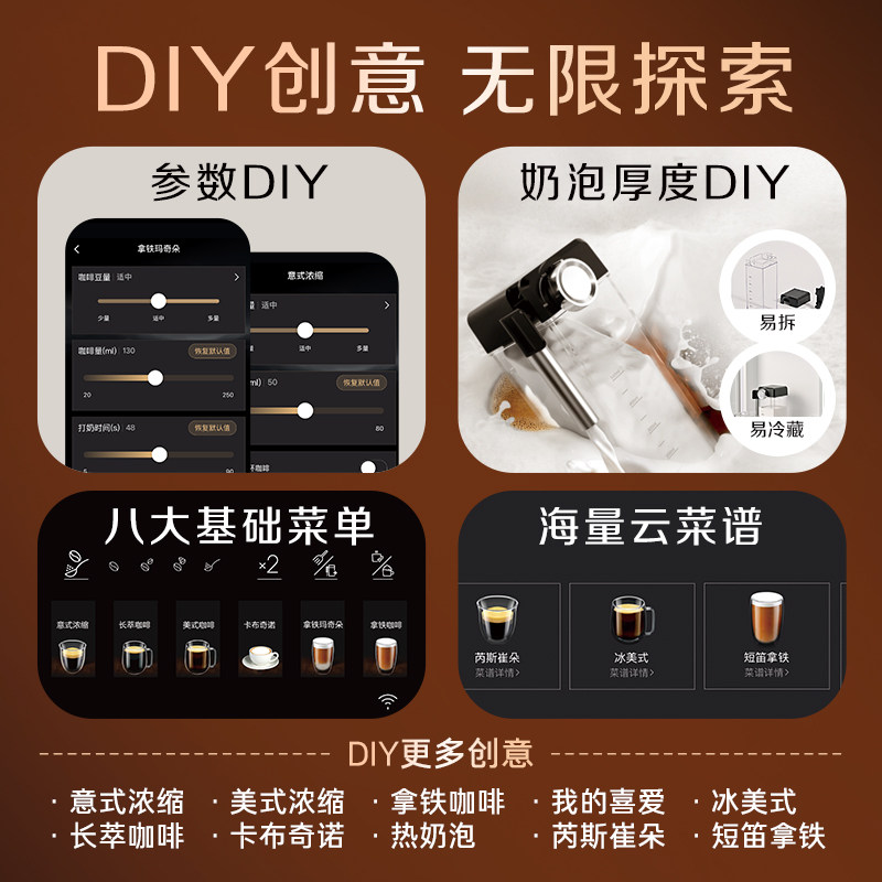 天施诺布feeka咖啡机全自动打奶泡家用小型半自动意式研磨一体机