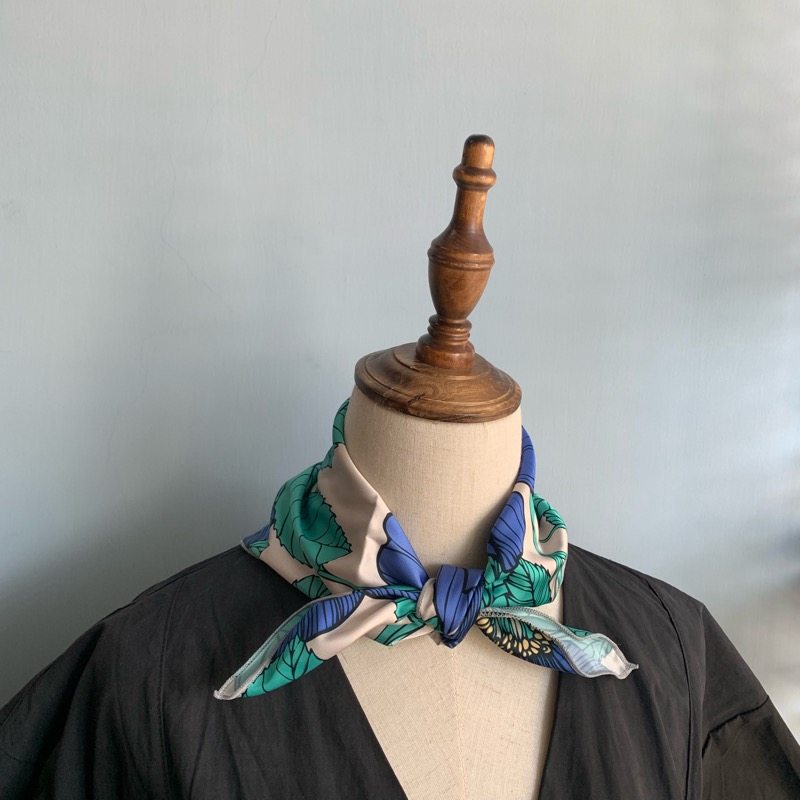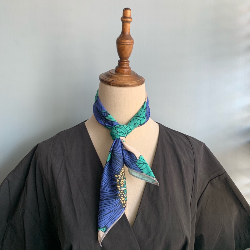 淘宝Flora夏末初秋小众复古文艺森女深色花朵丝巾韩版方巾小领巾头巾
