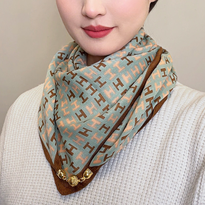 淘宝秋冬保暖围脖围巾女2025新款高级感三角巾时尚磁吸扣小方巾丝巾女