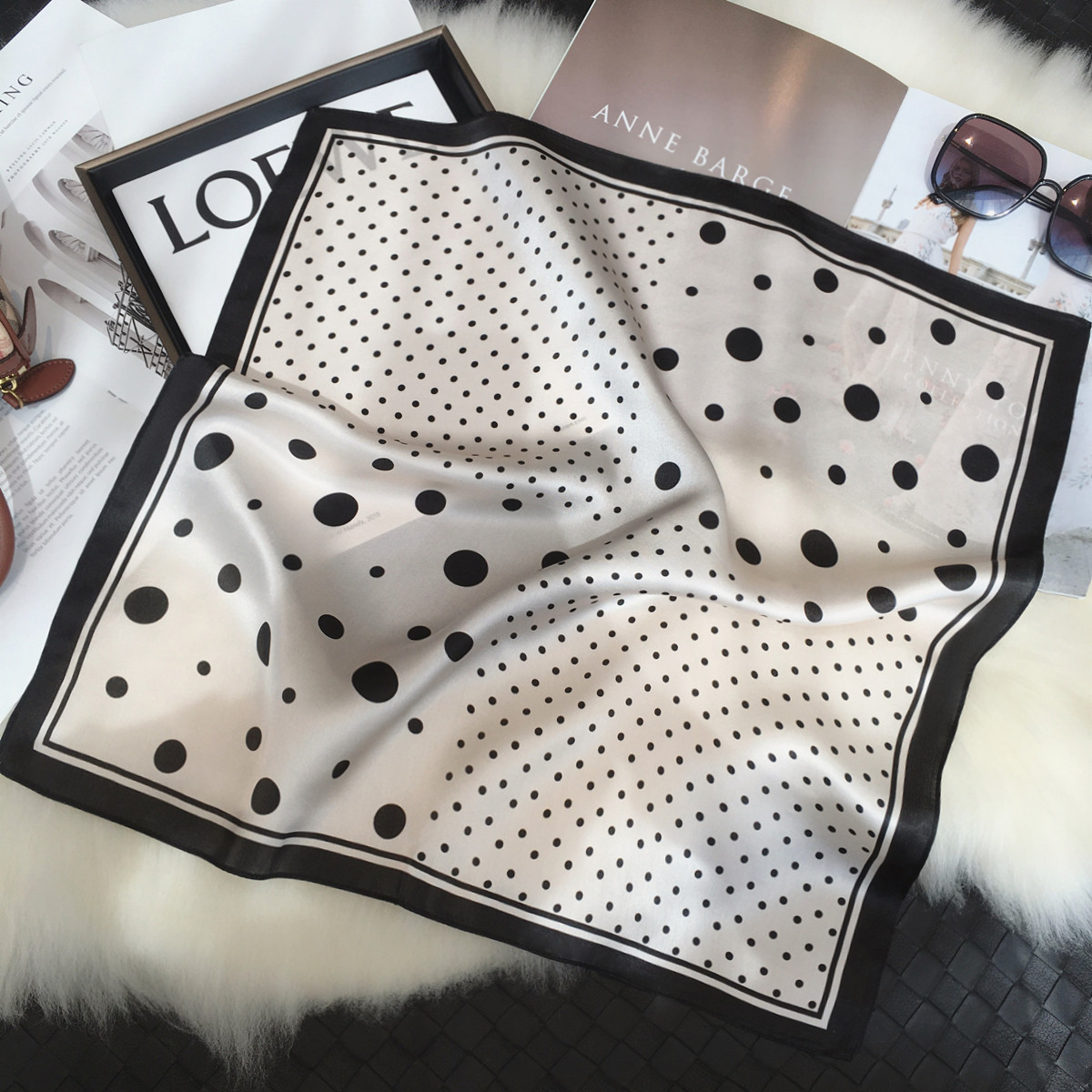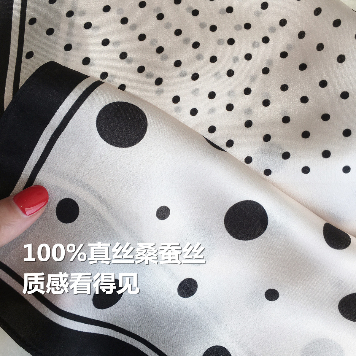 淘宝100%桑蚕丝丝巾女领巾53cm小方巾绑发春秋季韩国百搭波点真丝围巾