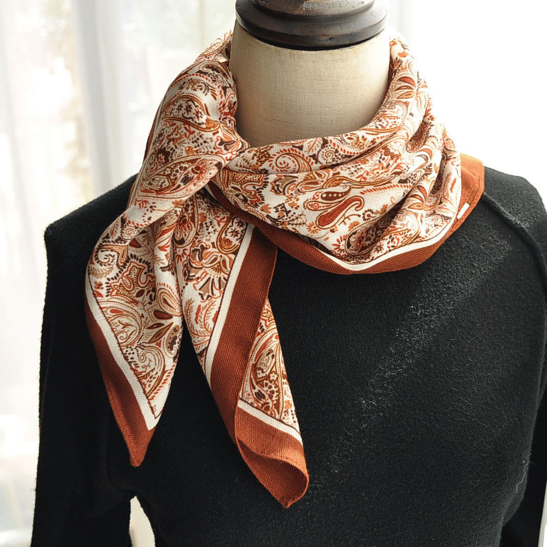 淘宝棉麻小方巾丝巾女红色腰果花小围巾2025新款百搭护颈小领巾高级感
