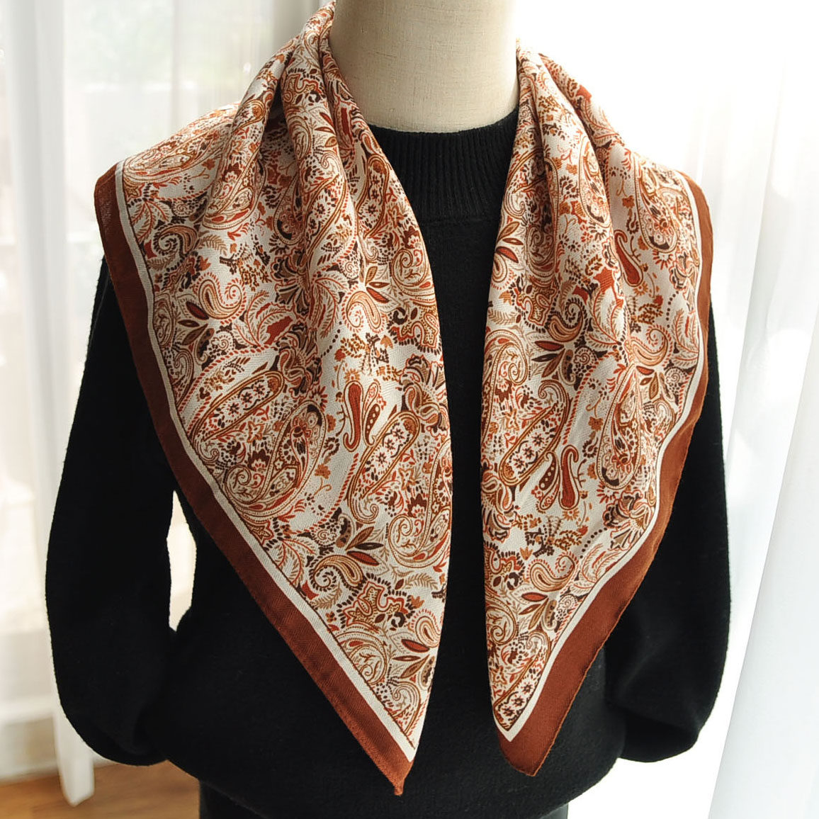 美拉德复古棕色波点系脖丝巾女2025新款百搭方巾气质时尚领巾配饰