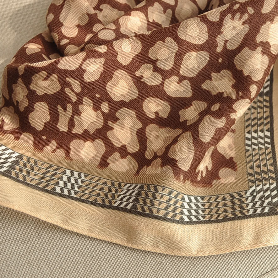 淘宝豹纹磁吸扣丝巾小方巾女春秋棉质手感保暖护颈围巾韩版装饰小领巾