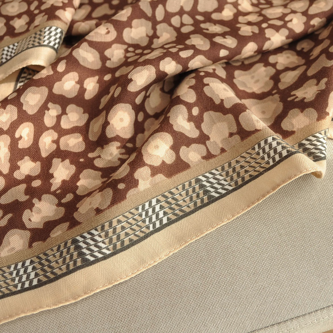 淘春秋新款复古风豹纹围巾女高级感长条丝巾纱巾薄款纯欲风领巾围脖