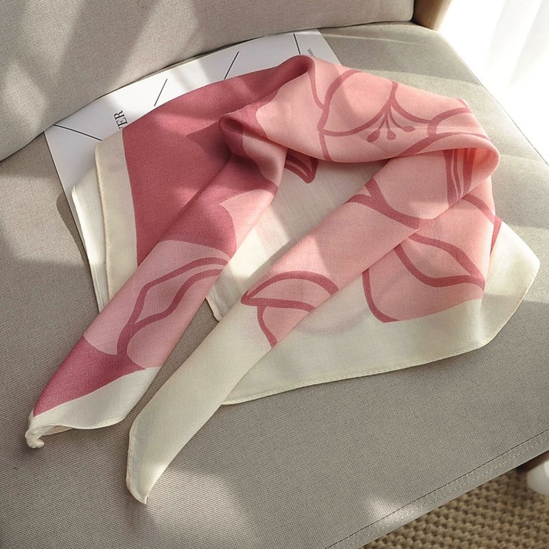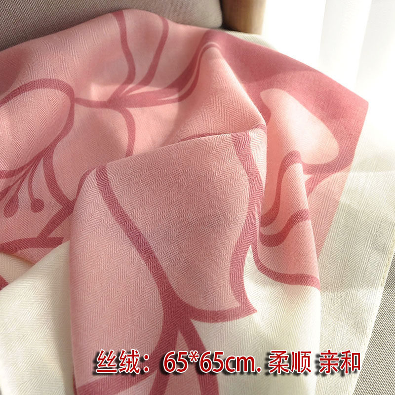 淘秋季新款百搭围巾小香风格纹100%桑蚕丝真丝丝巾装饰领巾70cm方巾