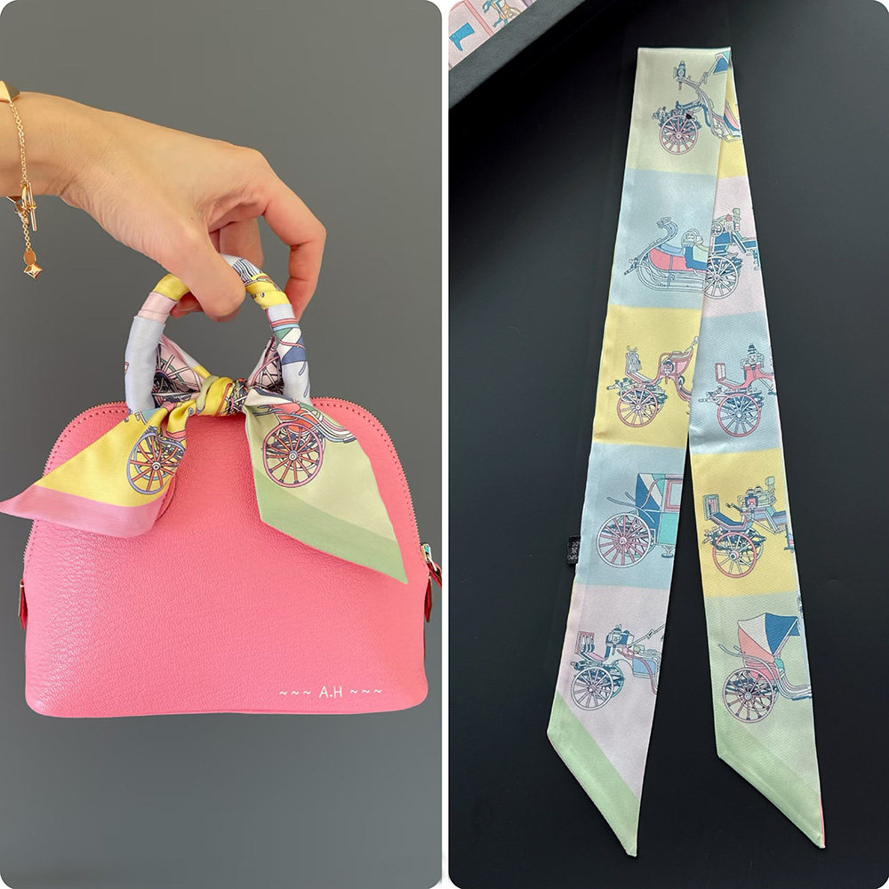 淘搭菜篮子高级感轻奢仿真丝印花丝巾绑包丝带2024新款女包包的缠带