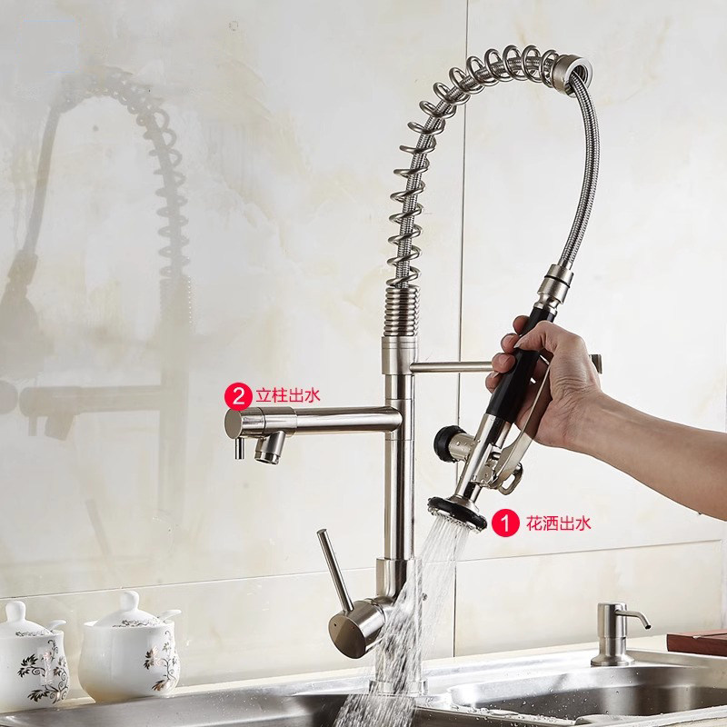 天猫弹簧水槽厨房龙头全铜体冷热洗菜盆洗碗抽拉水龙头喷枪花洒可旋转