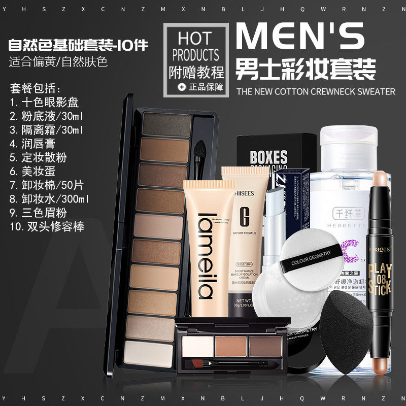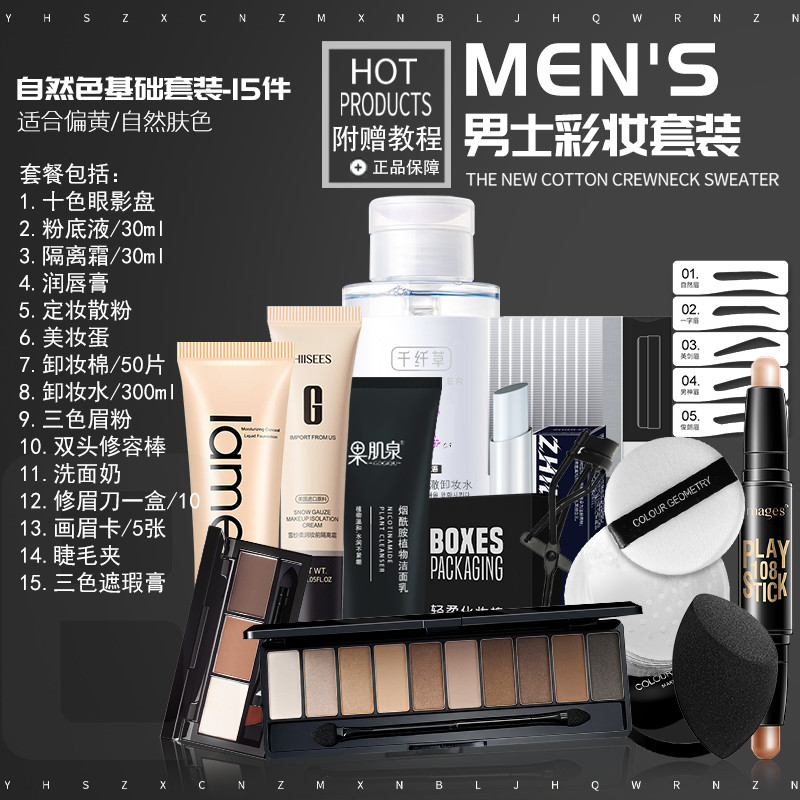 淘宝男士化妆品套装自然色bb霜遮瑕变帅粉底液护肤彩妆初学者全套正品