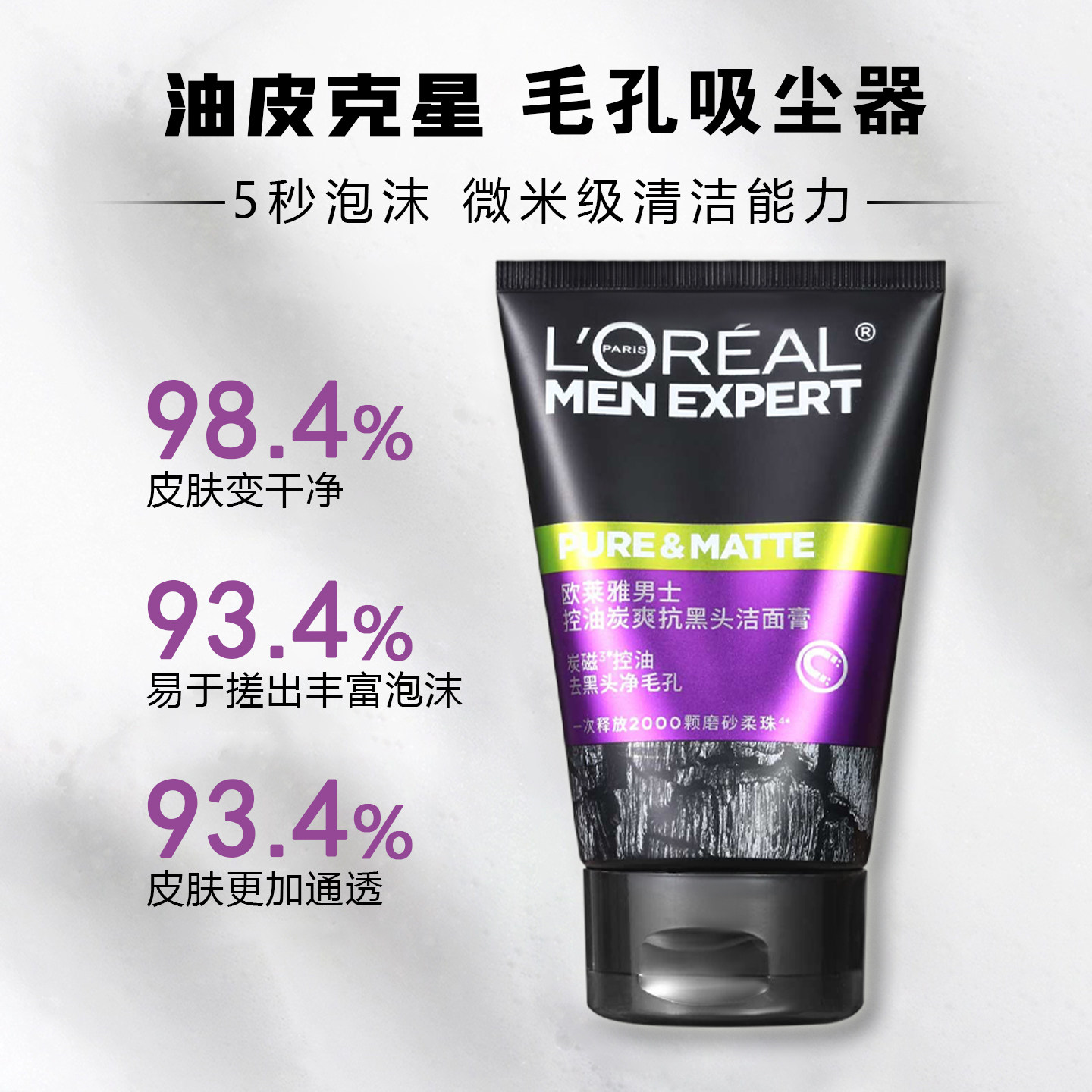 淘宝欧莱雅男士控油炭爽抗黑头洁面膏洗面奶清除老废角质去黑头收毛孔