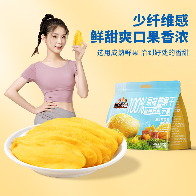 天猫三只松鼠_原味芒果干0添加玉娇芒脯蜜饯解馋办公室健康零食下午茶