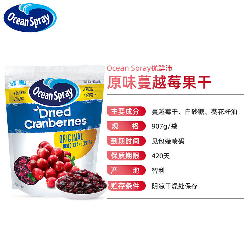 天猫进口OceanSpray优鲜沛蔓越莓干即食果干蜜饯甜品糕点烘焙果脯原料