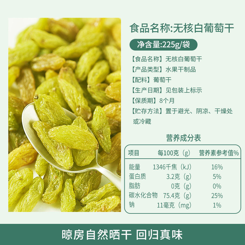 天猫楼兰蜜语果干无核白葡萄干新疆特产吐鲁番休闲零食225g*3免洗蜜饯
