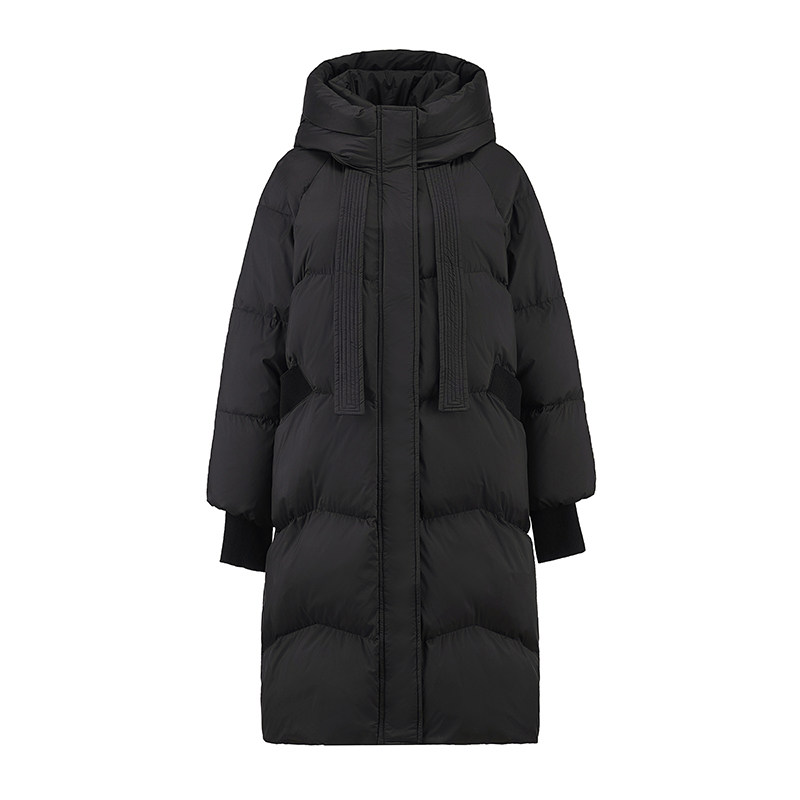 天90白鸭绒中长款纯色百搭连帽外套女冬2025新款超好看保暖羽绒服潮