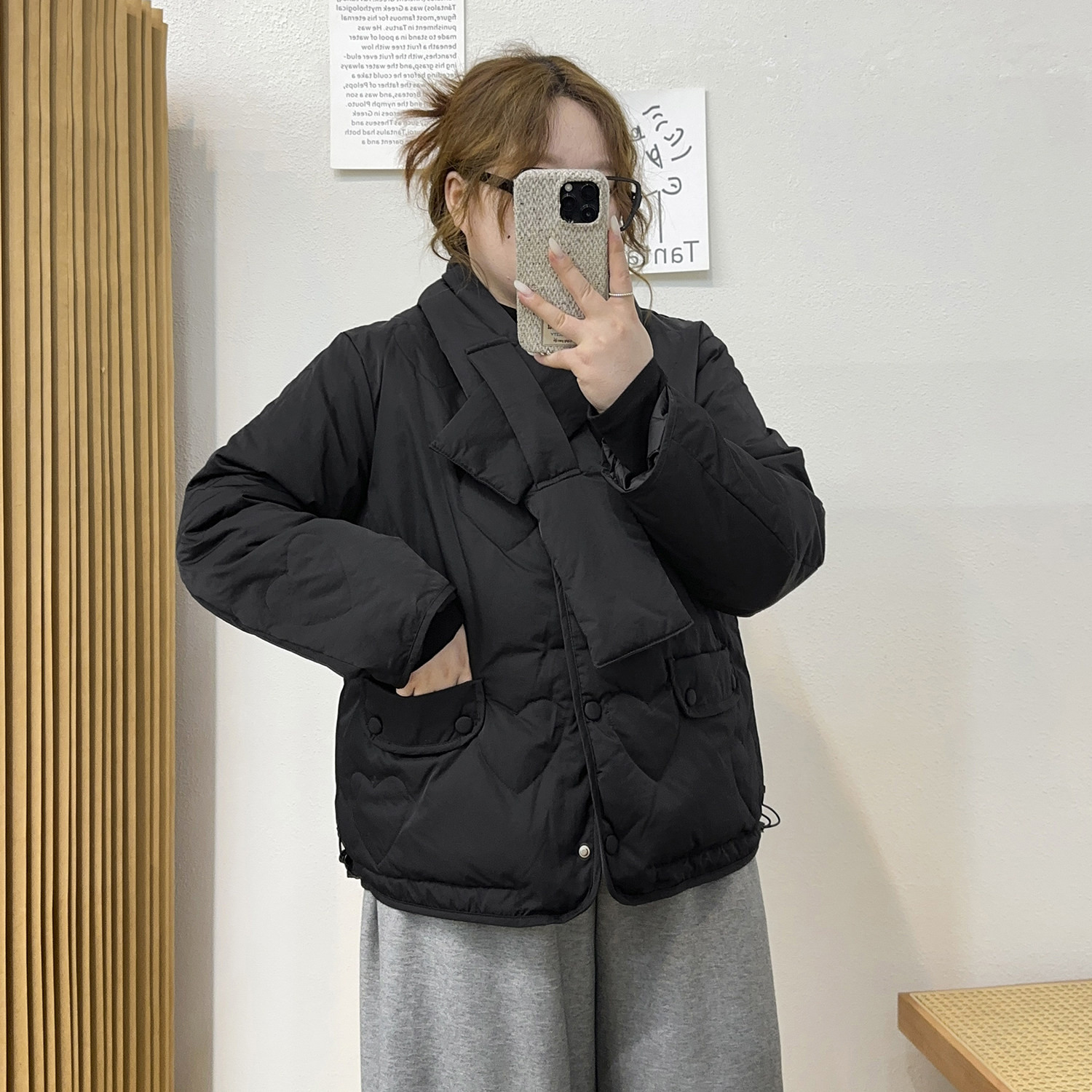 淘宝宛宛大码韩国女装秋冬季新款胖mm白鸭绒带围巾保暖羽绒服上衣外套