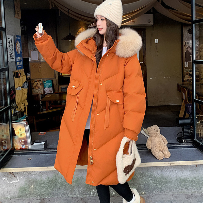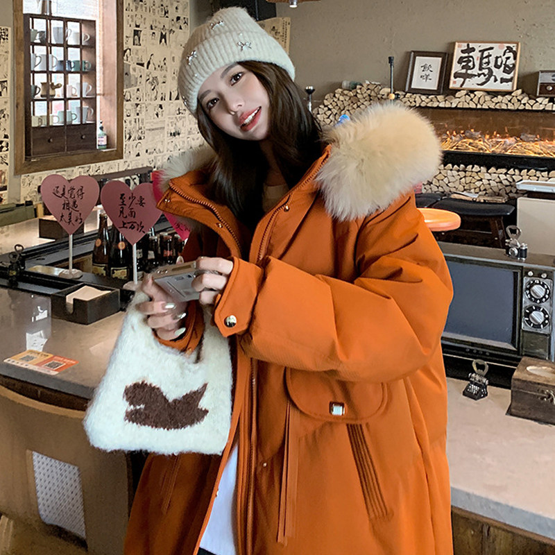 淘2025新款中长款羽绒服女连帽加厚宽松大口袋保暖外套冬