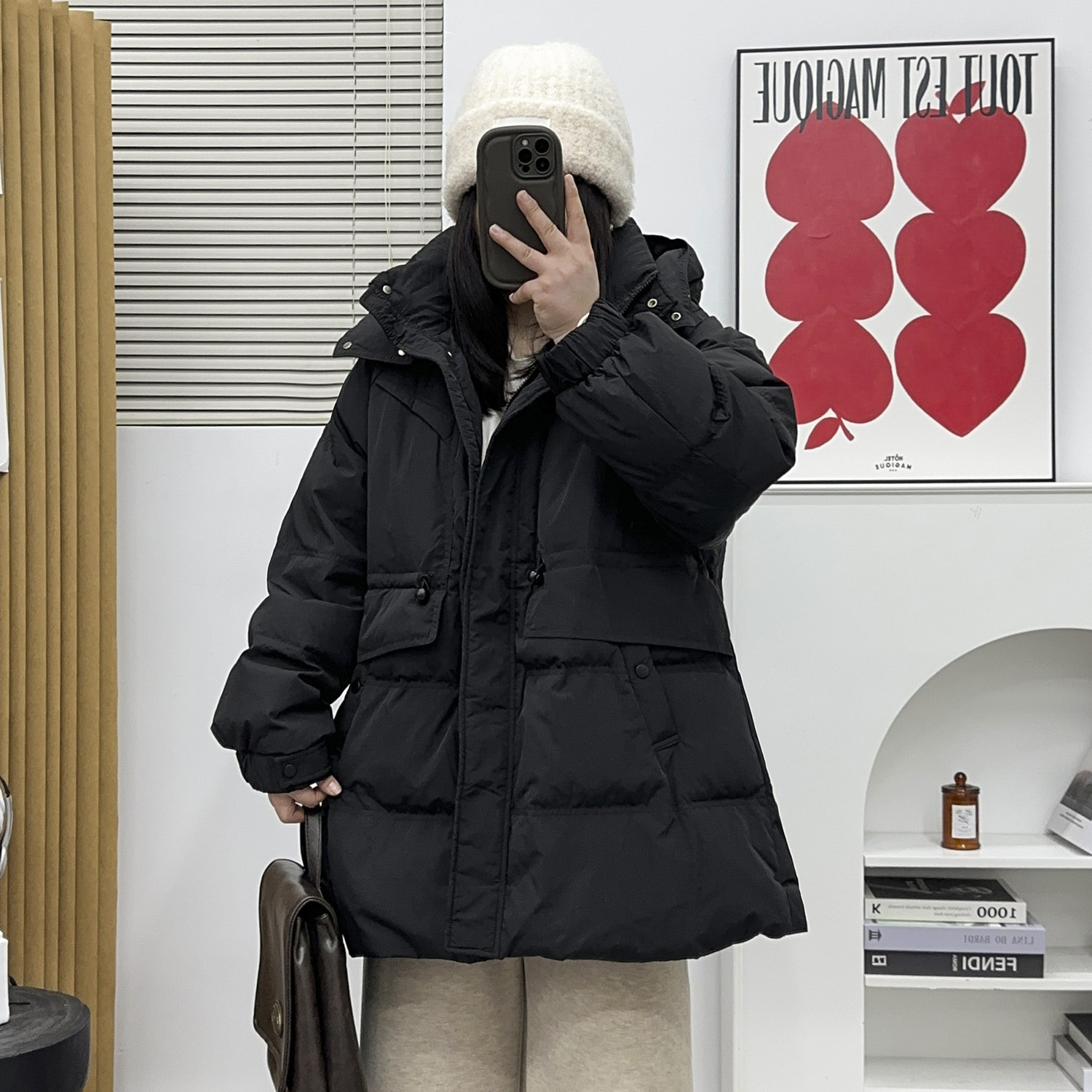 2025新款中长款羽绒服女连帽加厚宽松大口袋保暖外套冬