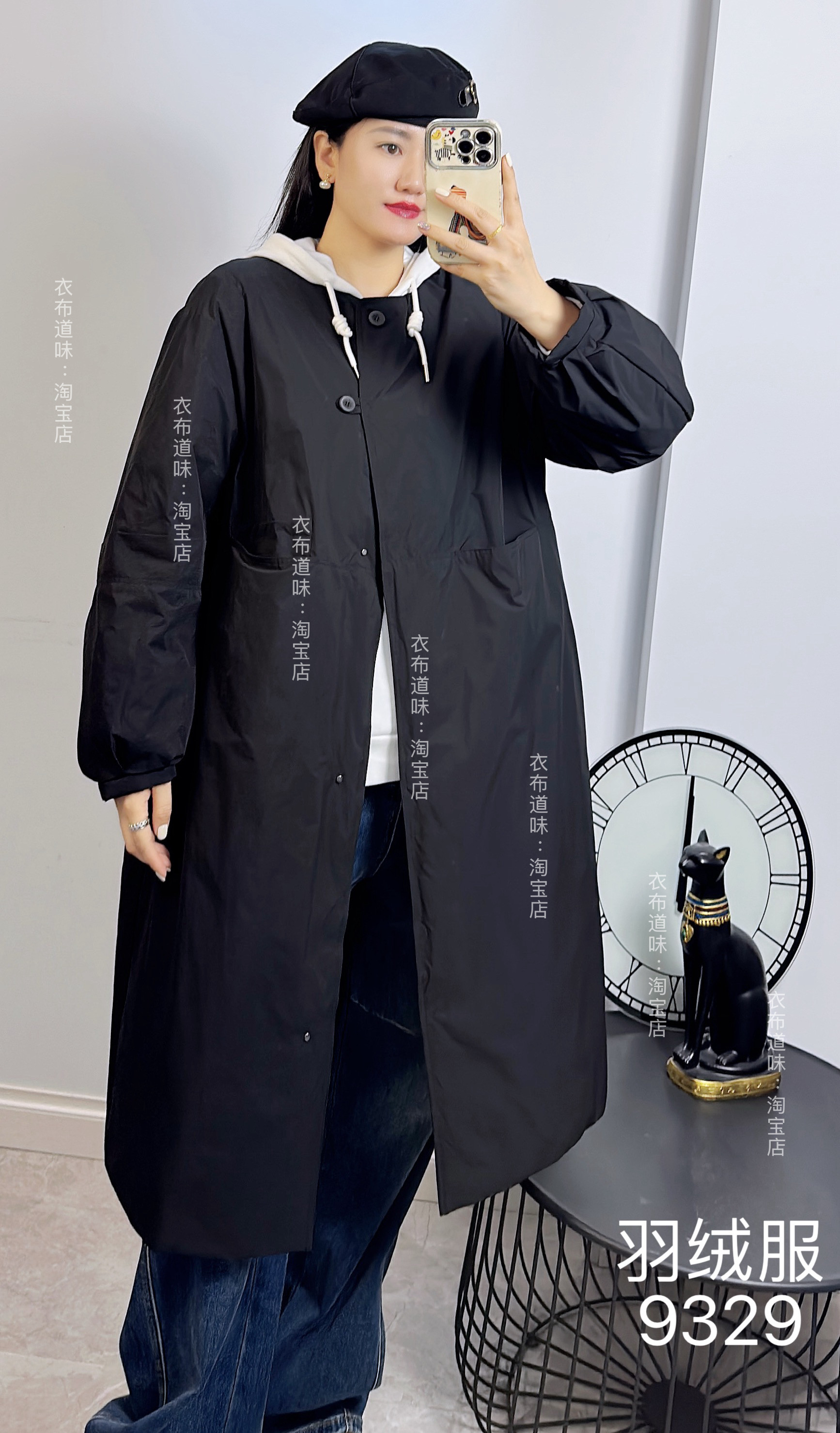 淘宝妃儿红9329冬加大码羽绒服女 慵懒过膝中长款轻薄宽松通勤外套